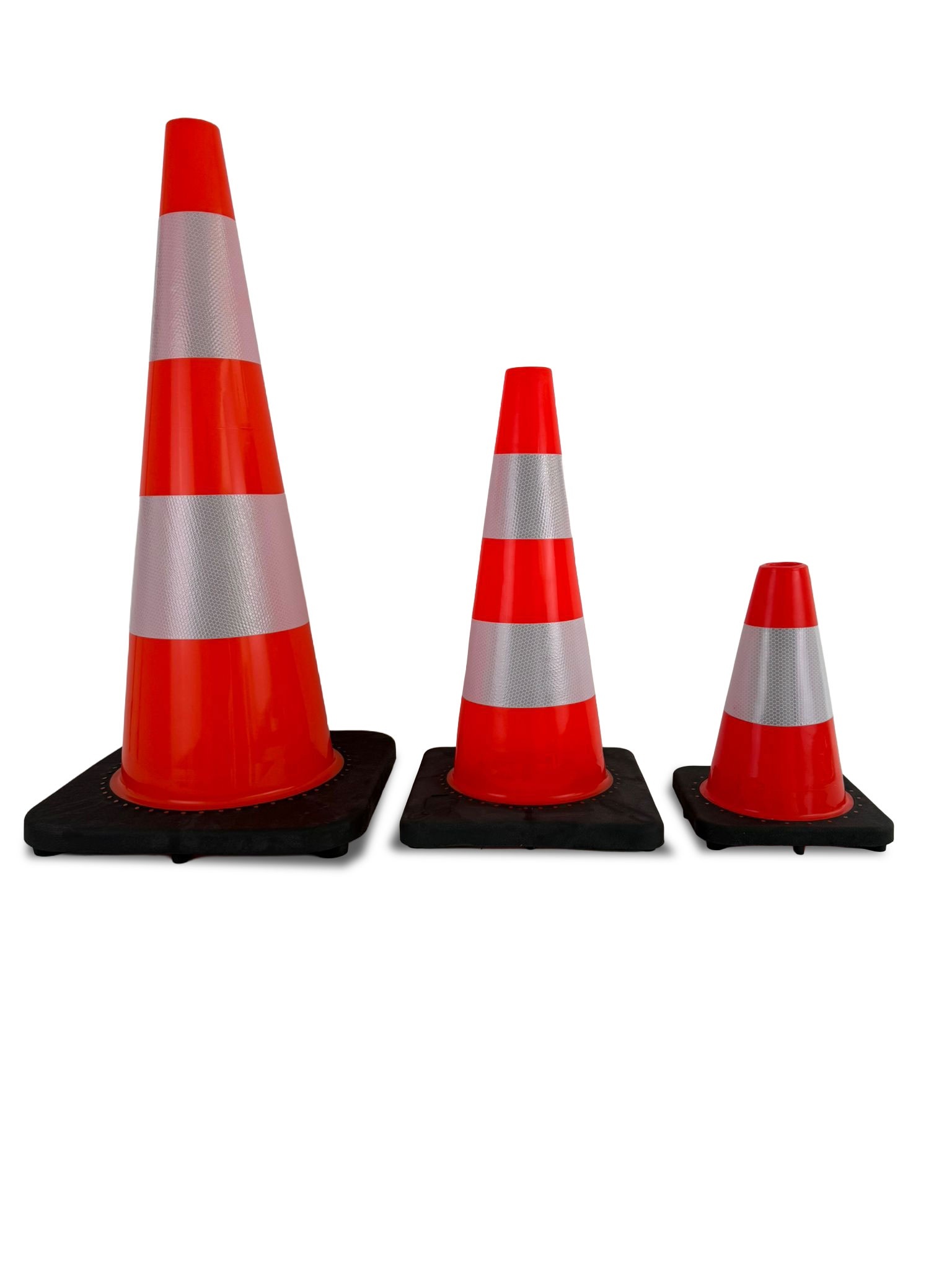 - Les cônes avec une hauteur de 50 et 75 cm ont une base noire pondérée