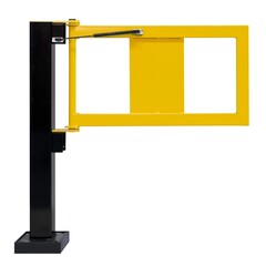 Deur voor magazijn railing HYBRID uitgerust met een gasdrukveer zodat de deur zich automatisch sluit. Voorzien van stalen paneel voor extra stabiliteit en om veiligheidspictogrammen aan te brengen.