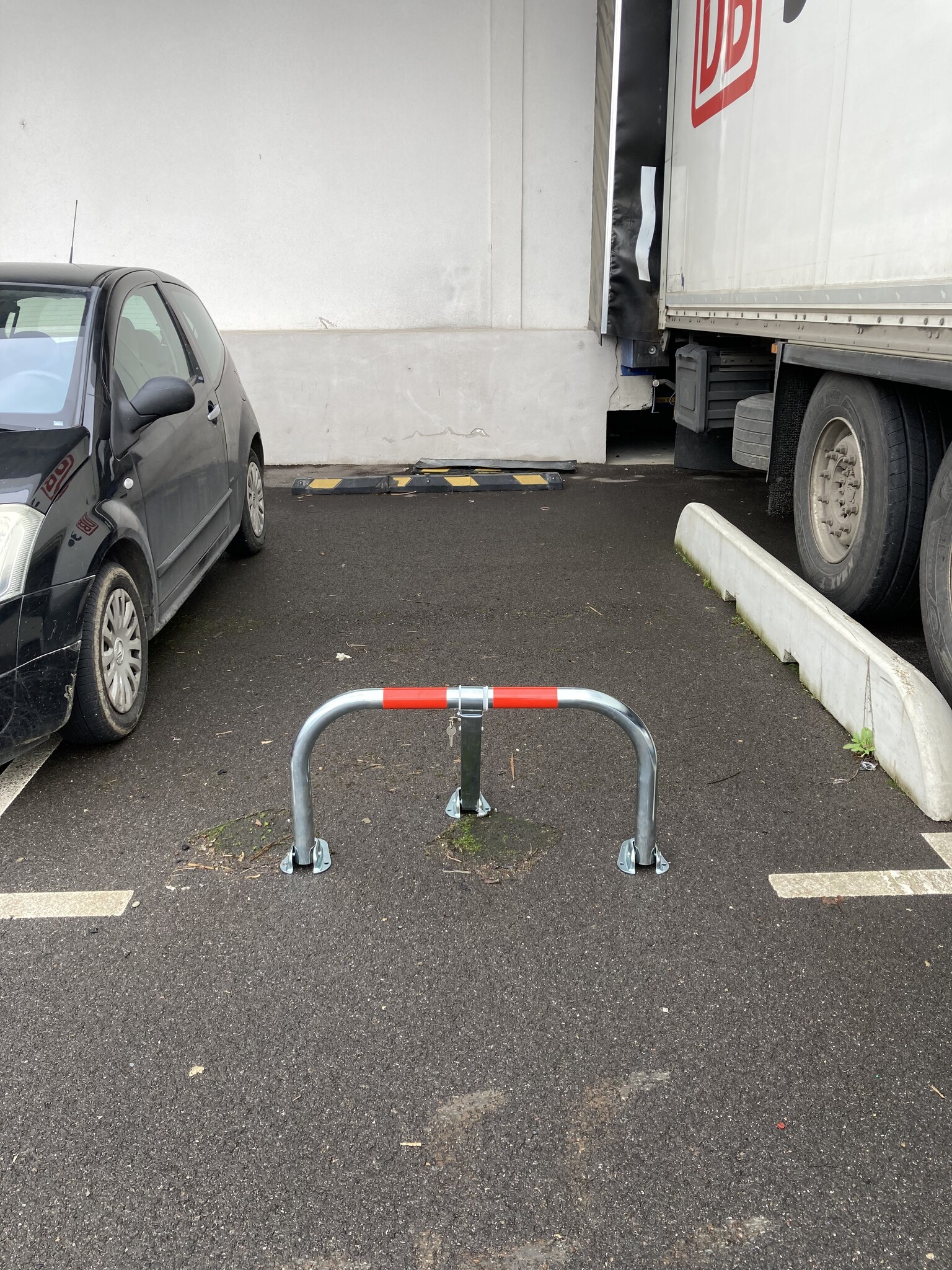 Robuuste parkeerbeugel in Ø50 mm staal voor betaalbare parkeerplaatsbescherming. Licht, sterk en duurzaam dankzij verzinkte voeten. Ideaal om voertuigen te weren en privéparkings te beveiligen.