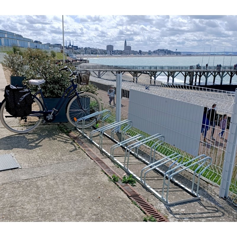 Enkelzijdig fietsenrek gemaakt uit gegalvaniseerd staal in drie afmetingen beschikbaar. 4, 6 of 8 fietsen. Dubbelzijdige fietsrekken zijn tevens beschikbaar.