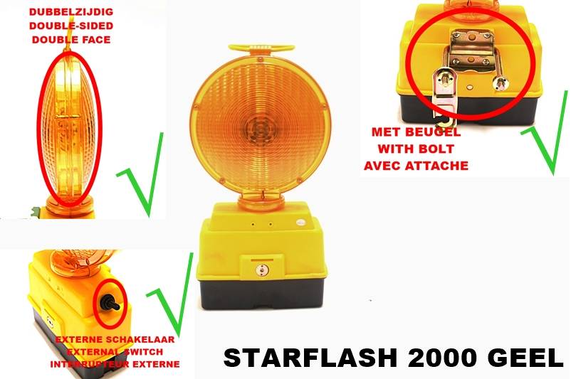 Dankzij de LED-technologie heeft de Starflash 2000 blauw een lange autonomie van ongeveer 160 uur met twee STAR batterijen type 4R25 (niet inbegrepen). De prismatische lens van 200 mm in onbreekbaar polycarbonaat zorgt voor maximale duurzaamheid, terwijl de hoge flitsintensiteit (±60 knipperingen per minuut) direct de aandacht trekt.